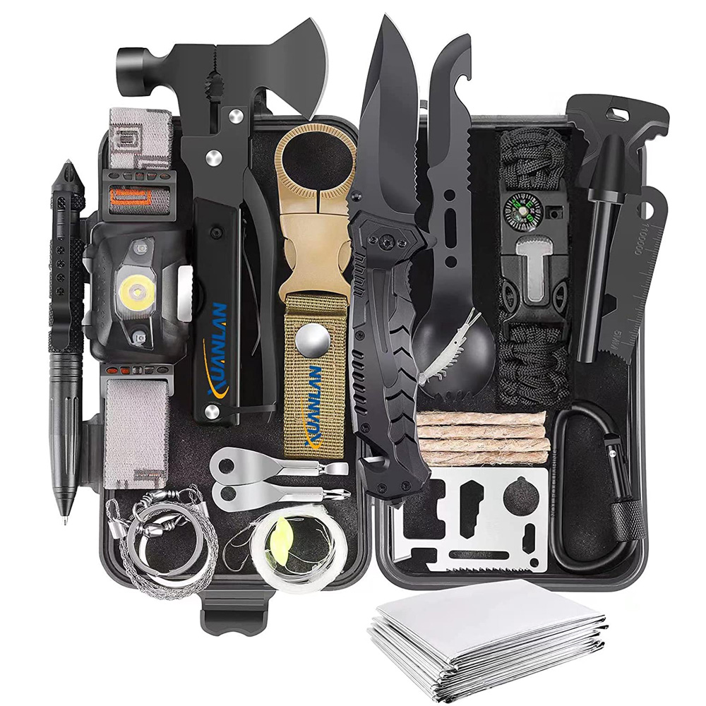 - 【Great Gift ideas】 29 in 1 XUANLAN survival kit is a tool box everyone needs. It’s great birthday, Christmas or Valentine’s Day gift ideas, especially be suitable for teen boys or family who like camping, hiking, hunting and mountain biking adventure trips. It’s also right fishing gifts for men.